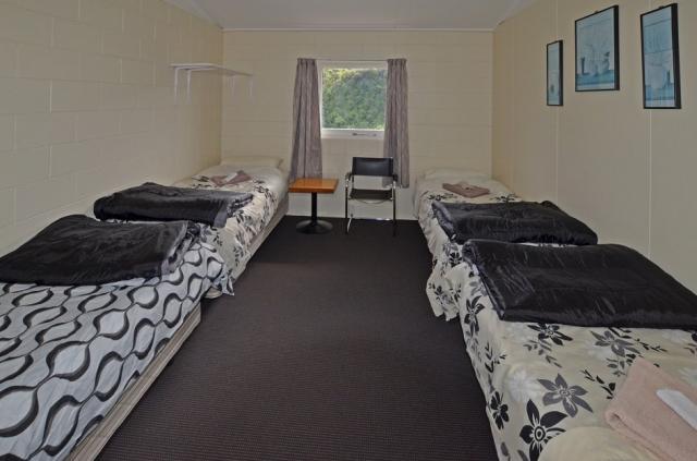 A self contained area for groups up to 24. Consisting of 6 bedrooms, 2 bathrooms, lounge area, and open plan kitchen dining. Each room sleeps 4 singles or 2 doubles on Motellier beds.